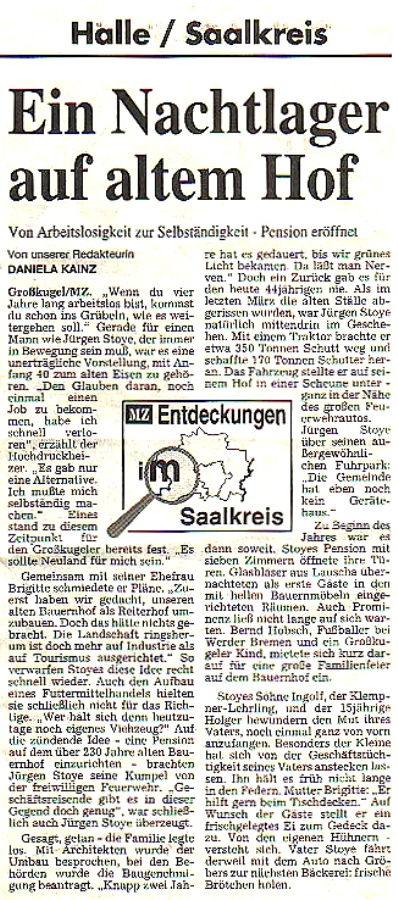 “Ein Nachtlager auf altem Hof” - das sagt eigentlich alles. Unser Bauernhof wurde 1996 komplett umgebaut, so daß wir im Januar 1997 die Pension eröffnen konnten.